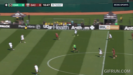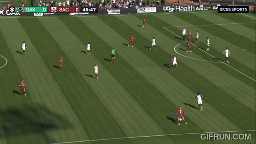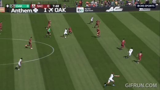 Defensively, Republic looked good as mentioned above, but did occasionally have some leaks. Look at this through ball by Oakland: