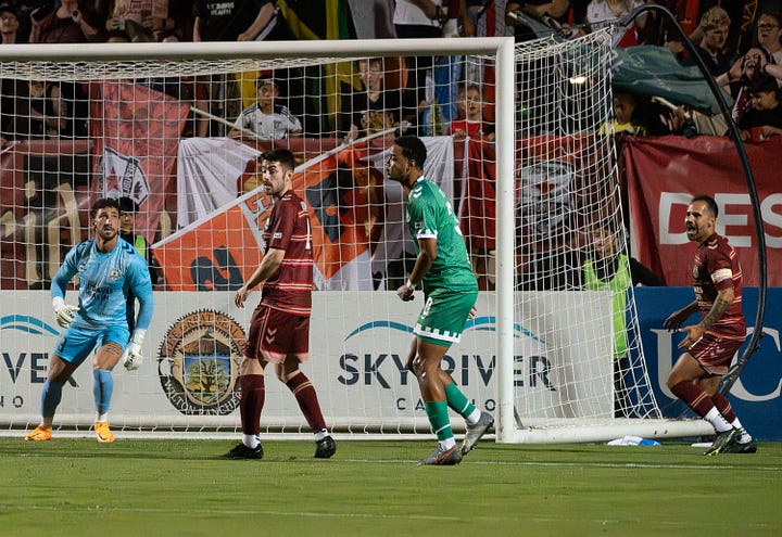 For me, in four seasons, I’ve now been onsite for one glorious victory and three heartbreaking defeats. I can barely summon words to describe the 4-3 extra-time-comeback win over San Jose Earthquakes in the 2024 US Open Cup Round of 16. The losses? The 2023 USL Western Conference Championship loss to Phoenix Rising FC where a 1-0 halftime lead became a 2-1 stoppage time defeat and someone threw a full beer can of beer hitting Emil Cuello (IS THIS RIGHT? THAT’S HOW I REMEMBER IT). Losing 2-1 to Seattle Sounders in the ‘24 Open Cup Quarterfinals was a bummer. Saturday completes the trilogy of miserable defeats.