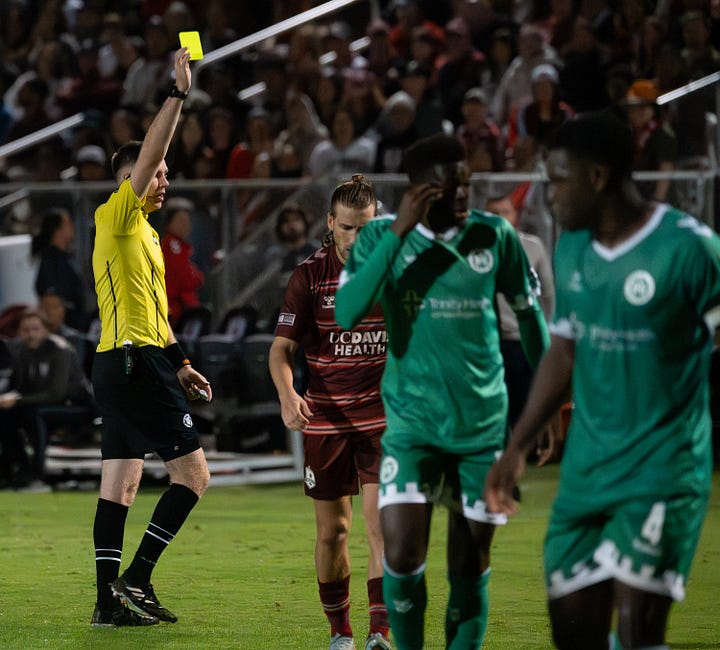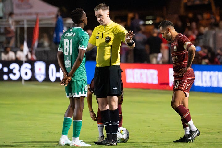 You can certainly second guess whether Collins got the tactics or the lineup right. One could also point out that the Quails were not helped by poor officiating, which is becoming a recurring theme that USL needs to address soon. Side note: the official YouTube highlights of this match (and most matches) omit controversial calls in a way that suggests there’s something to hide.