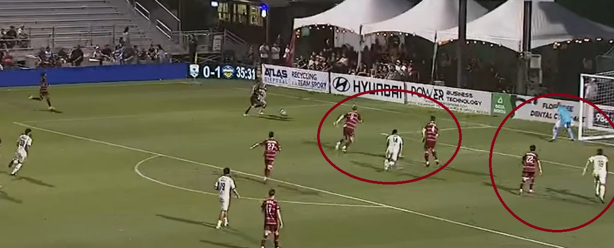 Not shots on goal. Three shots total. Just one of those was on target. The attack was slow, lackadaisical, and unintentional. If you had hidden the score bug, one would assume Republic was winning 2-0 and closing out the game, not losing 2-0. This period of play is simply unacceptable. Now, there is an argument that scoring against 10 men is actually more difficult—they put all 10 guys behind the ball, leaving little room for the attacking team to operate. But I don’t buy that excuse. The final 7 minutes of the match showed that Republic were able to drive forward, create chances, and shoot on target. The real question for the club is where was that earlier? Why was that pressure not applied for the entire second half while down by 2?